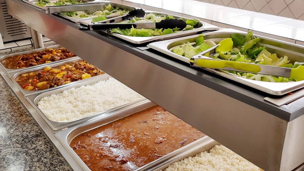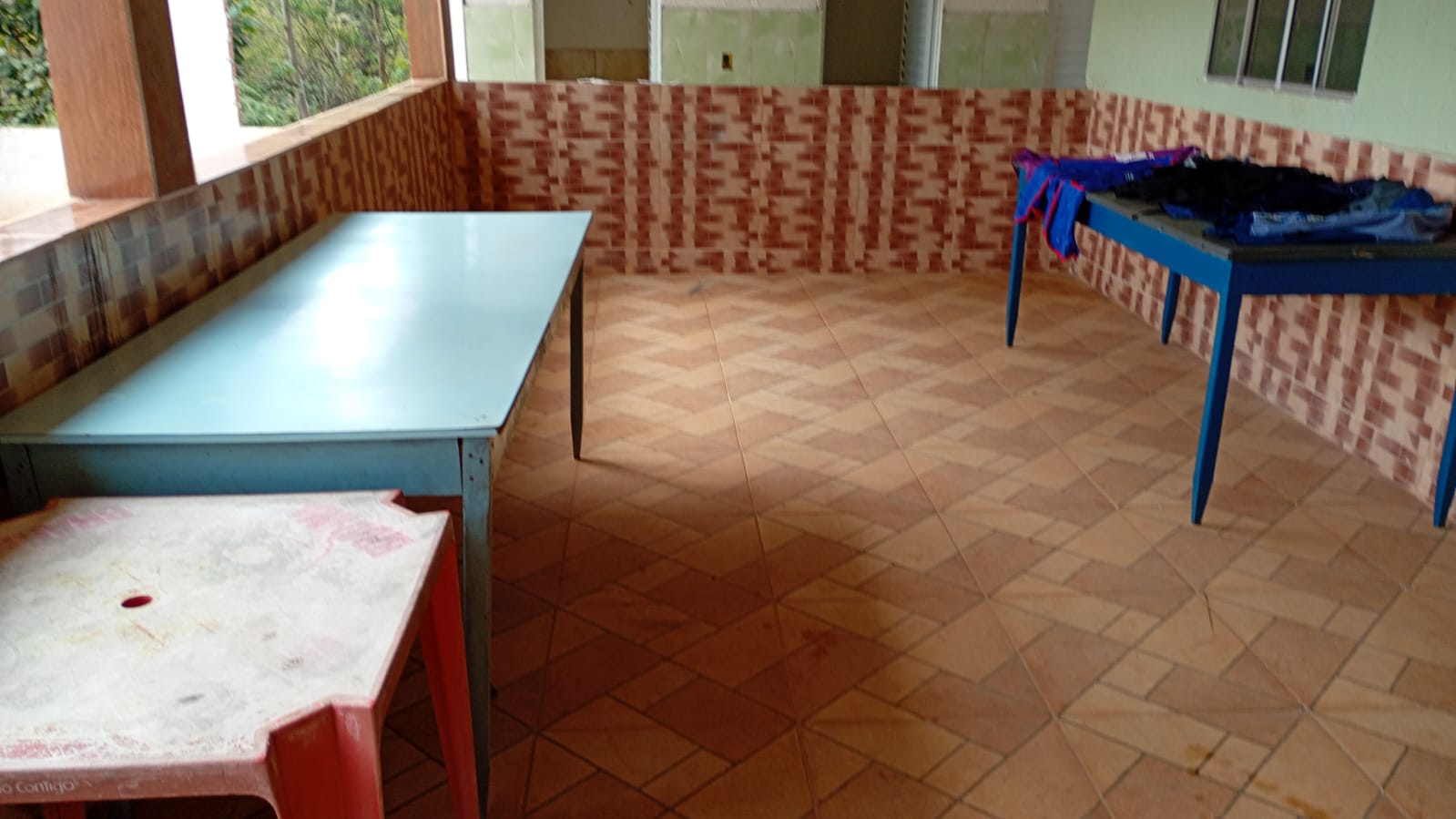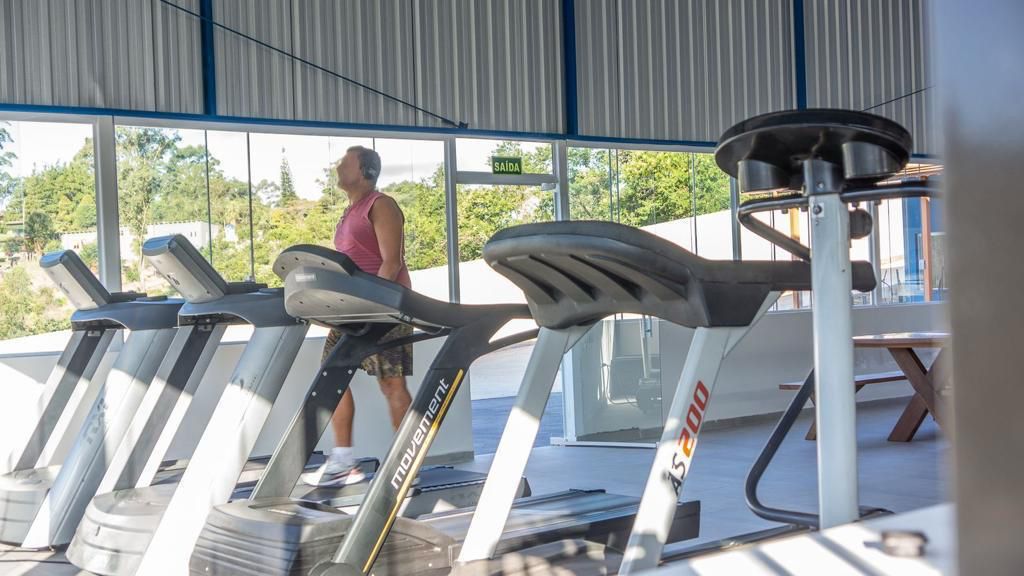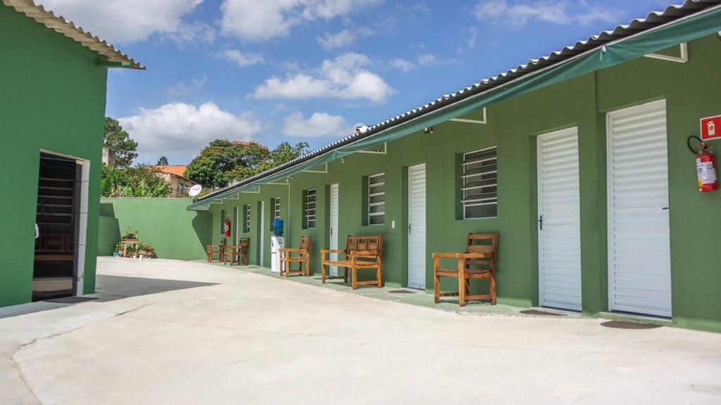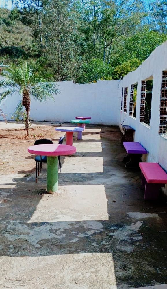 Ambientes equipados com piscina, academia, campo e quadra para esportes, refeitório, além de uma área ampla.